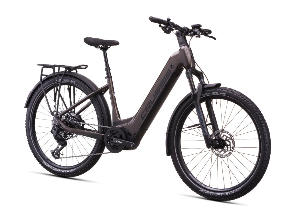 ONE-Country 10.11: Městské elektrokolo pro pohodlnou a spolehlivou mobilitu Model CRUSSIS ONE-Country 10.11 byl vyvinut pro ty, kdo hledají praktické a odolné elektrokolo do městského prostředí i na delší vyjížďky. Poskytuje výbornou stabilitu a snadnou ovladatelnost i v hustém provozu. Energii elektrokolu dodává baterie LG Li-Ion 715 Wh (19,88 Ah), která umožňuje dojezd až 170 km na jedno nabití bez nutnosti častého dobíjení. Je integrovaná do rámu e-biku, čímž podtrhuje elegantní a čistý design. Vzduchová vidlice ROCKSHOX Recon Silver RL Solo Air 27,5" (zdvih 100 mm) tlumí nárazy a nerovnosti, což přispívá k pohodlí při jízdě po rozbitých nebo hrbolatých površích. Motor PANASONIC GX Ultimate (250 W, MAX 600 W, 95 Nm) poskytuje tichou a rovnoměrnou asistenci, což oceníte zejména při jízdě do kopce nebo při rychlejších přesunech. Přesné a spolehlivé řazení zajišťuje přehazovačka SRAM 70 T-Type Eagle (12 rychlostí), zatímco hydraulické kotoučové brzdy SHIMANO Deore dodávají stabilní brzdný výkon a kontrolu při zpomalování. Robustní rám a použité kvalitní komponenty činí model CRUSSIS ONE-Country 10.11 spolehlivým partnerem pro každodenní dojíždění i rekreační výlety po městě či okolní krajině.| rám | Alu 6061- velikost rámu 17" |