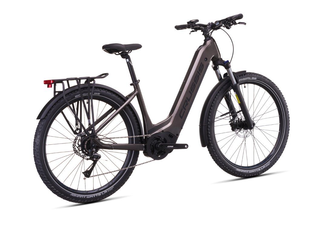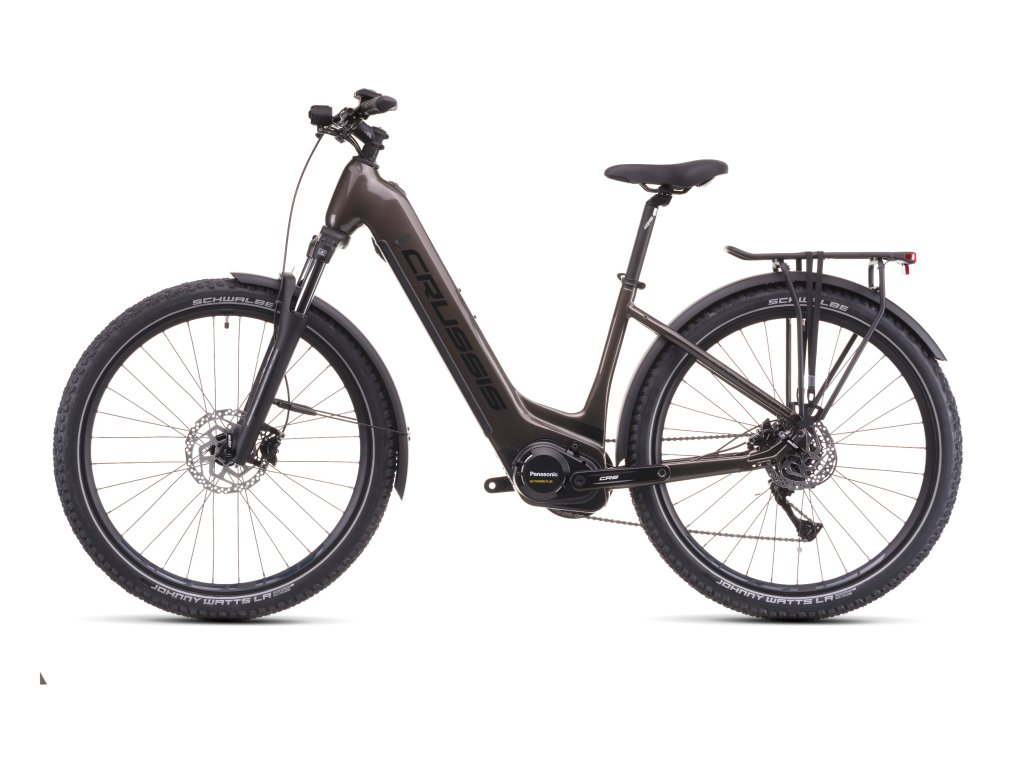 CRUSSIS ONE-Country 7.11: Městské elektrokolo s důrazem na pohodlí a dojezd Model ONE-Country 7.11-(513 Wh) je ideální volbou pro ty, kdo hledají praktické elektrokolo pro každodenní použití, a zároveň ocení vyšší kapacitu baterie. Rám se sníženou geometrií usnadňuje nasedání i sesedání, což oceníte především při častých zastávkách ve městě nebo při pohodových výletech po okolí. Srdcem kola je středový motor PANASONIC GX Power Plus s točivým momentem 75 Nm, který plynule reaguje na váš šlapací výkon. Baterie LG Li-Ion 513 Wh (14,25 Ah) nabízí dlouhý dojezd až 130 km, což z tohoto modelu dělá vhodného partnera i pro delší výpravy mimo město. Komfort při jízdě zajišťuje odpružená vidlice SUNTOUR XCM32 NLO a jistotu na různorodém povrchu dodávají pláště SCHWALBE Johny Watts LR Performance. O bezpečné zastavení se starají hydraulické brzdy SHIMANO BR-MT200, známé pro svůj vyrovnaný brzdný výkon. Přehazovačka SHIMANO Acera s 8 převody umožňuje snadné přizpůsobení tempa jízdy podle situace. Na barevném LCD displeji PANASONIC máte vždy po ruce přehled o rychlosti, režimu asistence i stavu baterie. ONE-Country 7.11-(513 Wh) spojuje jednoduché ovládání, dlouhý dojezd a praktické městské provedení – ideální volba pro jízdy bez spěchu i bez omezení.| rám | Alu 6061- velikost rámu 17" |